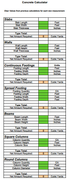 Home » Concrete Estimating Sheets » Concrete Calculator Sheets
