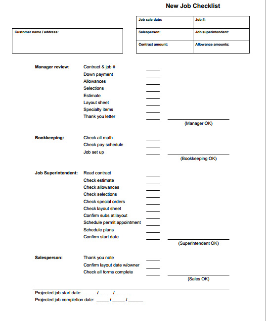 At the right hand side, there are six boxes vacant for putting 1. Job sale date 2. Sales person 3. Contract amount 4. Job 5. Jobs superintendent and 6. Allowance amount.