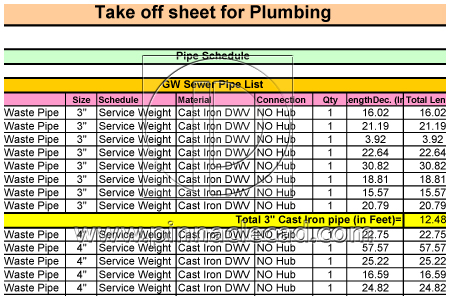 A precise construction estimate details of every particular involved in construction including plumbing estimate. A plumbing takeoff is designed to acquire the necessary information about the plumbing materials required.